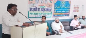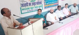 CRS शाहजहांपुर-मदरसा नूरूल हुदा बिजली पूरा में काकोरी ट्रेन एक्शन की सौवीं वर्षगांठ एवं जश्ने आजादी के मौक़े पर मुशायरा कवि सम्मेलन का आयोजन किया गया जिसकी अध्यक्षता वरिष्ठ कवि ज्ञानेन्द्र मोहन ‘ज्ञान’ ने, संचालन युवा कवि विकास सोनी ‘ऋतुराज’ने किया! मुशायरा कवि सम्मेलन में स्थानीय कवियों और शायरों ने प्रतिभाग करते हुए देश के अमर बलिदानियों की याद करते हुए अपनी काव्य रचनाओं गीत ग़ज़लों से श्रद्धांजली अर्पित की!