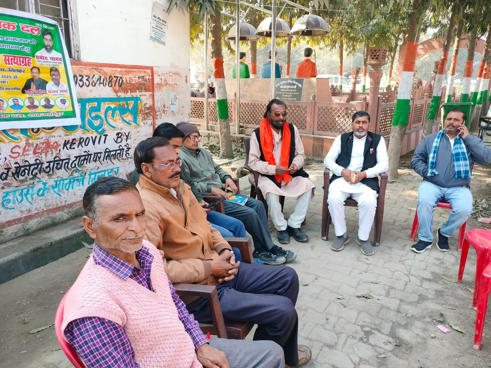 भा० कृ० द० द्वारा आज 45 दिन चल रहे सत्याग्रह की प्रमुख मांगे:1-छुट्टा गाय सांडों की ज्वलंत समस्या। 2-सलेमपुर से खैरपुर मार्ग की मरम्मत। 3-तहसील प्रशासन द्वारा जनहित प्रार्थना पत्रों को उपेक्षा 4-दोशपुर रतनपुर रजपुरा फाजीलपुर होकर तिलहर तक डामरीकरण। 5-खैरपुर चौराहा पर फ्लाईओवर। 6-तिलहर बसड्डा तक बस संचालन। 7-बिरियाबाबा रोड पर नो पार्किंग जोन। 8-धान खरीद में फर्जी सत्यापन एवं करोड़ों की एमएसपी घोटाले की जांच। 9-यूरिया डीएपी के साथ किसानो एवं फुटकर दुकानदारों को टैगिंग के लिए मजबूर किया जाना। 10-कटरा में किसान मंडी निर्माण। 11-कटरा रेलवे स्टेशन पर ट्रेनों का स्टॉपेज। 12-तिलहर रेलवे स्टेशन पर ट्रेनों का स्टॉपेज। 13-चोरी की घटनाओं को थाना पुलिस द्वारा दवा देना। 14-खैरपुर पीएचसी के सुचारू संचालन। 15-तिलहर के दक्षिण लखोहा फाजिलपुर बंधा राजनपुर होकर गंधार रजवाहा के किनारे बाईपास का निर्माण कराए जाने जैसी जनहित मांगी है। आज सत्याग्रह पर जिला अध्यक्ष भानु प्रताप गंगवार, दिनेश राठौर,सुरेंद्र सिंह,हरिओम, विनोद सिंह, चंद्रपाल, शिवोम, महेशपाल, बागेश यादव, नत्थुलाल, आर्यकांत यादव, लीलाधर, पेशकार कश्यप,राकेश सिंह,रामनिवास सिंह,लटूरी सिंह,, उपस्थित रहे।