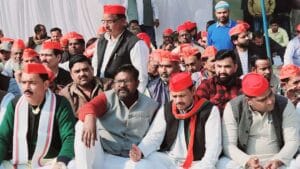 विपक्ष सांसदो पर कार्यवाही के बिरोध में समाजवादी पार्टी का धरना!
