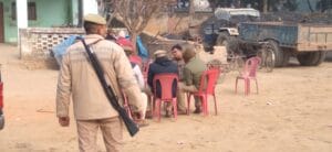 माहौल में शान्ति बनाए रखने को गांव में पुलिस बल तैनात!