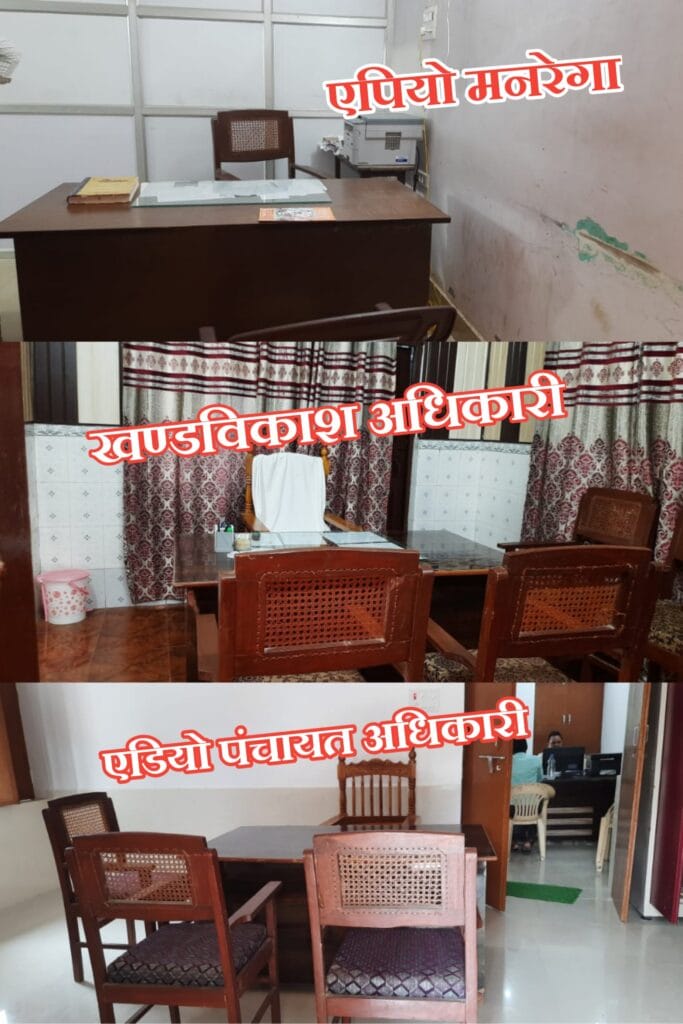 दोपहर 12:00 बजे तक खंड विकास अधिकारी ,एपीओ मनरेगा एवं एडीओ पंचायत की खाली पड़ी कुर्सी